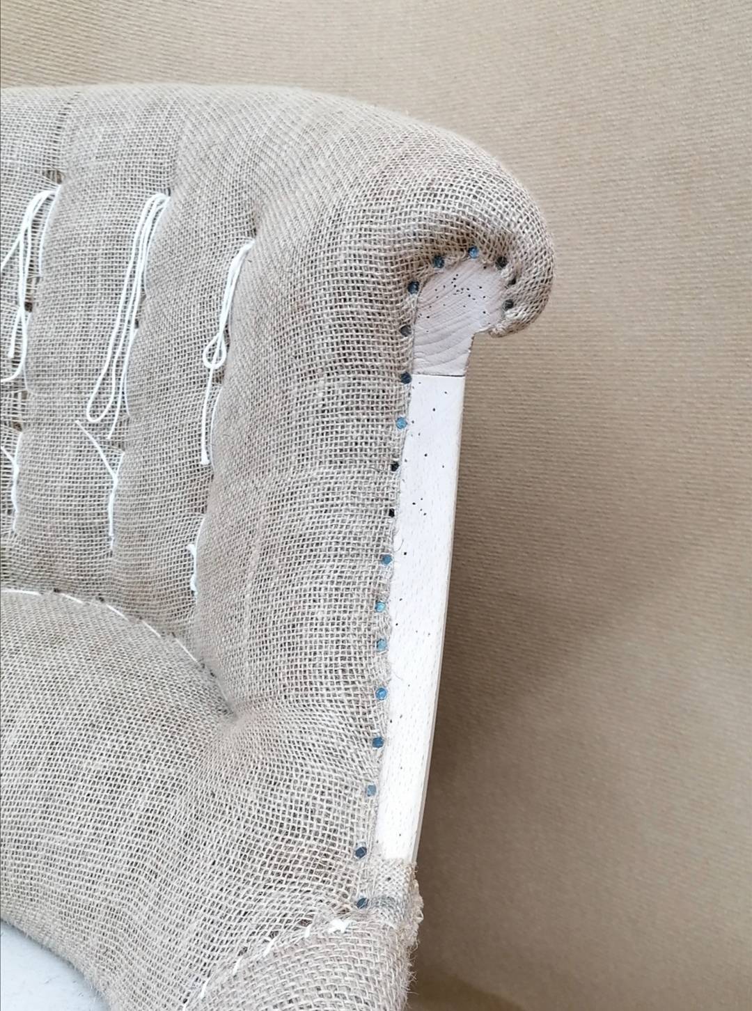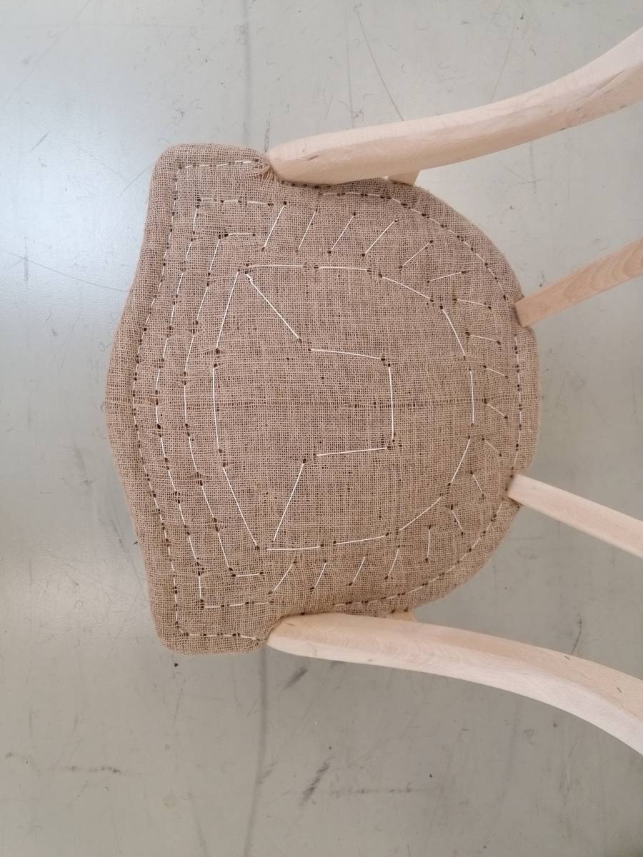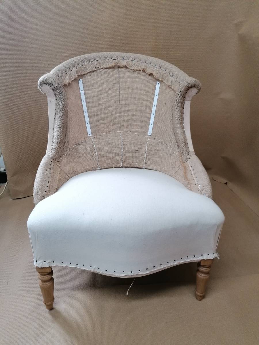 Garnissage traditionnel avec du crin coco pour l'assise et le dossier ainsi qu'une fixation à la semence.